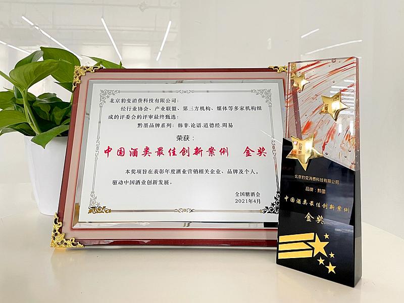 近日,在今年糖酒會的品牌評選活動中,經行業協會產業聯盟、第三方機構、媒體等多家機構組成的評委會的最終甄選下,北京豹變消費科技有限公司旗下白酒品牌黔墨韓非.論語.道德經.周易系列憑借獨特的外觀設計精湛的工藝、優質的口感,榮獲中國酒類最佳創新案例金獎。