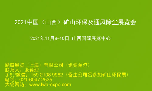 “2021中國(山西)礦山環保及通風除塵展覽會”, 將于2021年11月8-10日在山西國際展覽中心精彩上演。 疫情推動企業升級轉型,各生產企業重整旗鼓,重新規劃生產流水線,促使生產過程更高效、更安全、更精確,以搶占更高的市場分額。設備材料供應商將把握商機,齊聚于這個行業盛會上,與生產企業買家共聚,分享行業新技術及資訊,為其企業生產升級轉型獻計獻策,進行熱切交流。 山西省礦產資源豐富,礦產資源種類繁多,分布廣,發現礦產105種,已利用的礦產67種,儲量居全國第一位的礦產有煤、鋁、耐火粘土、鎵礦、鐵釩土、沸石及建筑石料用灰巖。隨著經濟發展和基礎建設的高速增長需要,“一帶一路”的國家戰略,礦山企業及砂石企業對于裝備需求巨大! 我們特于2021年11月8-10日在中國(太原)煤炭交易中心-山西國際會展中心舉辦“2021中國(山西)礦山環保及通風除塵展覽會”,本展屬同期綠色礦山展子展,由勵威展覽(上海)有限公司組織。
