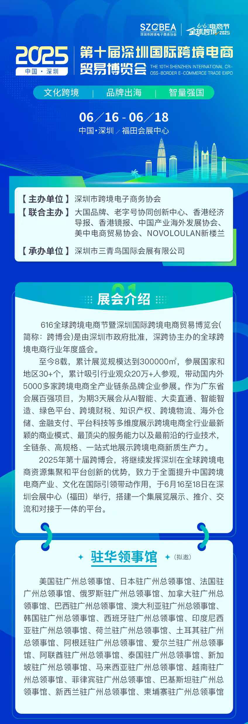 深跨協-2025第八屆全球跨境電商節暨第十屆深圳國際跨境電商貿易博覽會,一場匯聚全球智慧與商機的年度盛事,將于璀璨奪目的2025年6月16日至18日,在深圳這座活力四射、創新無限的國際大都市的心臟地帶——深圳會展中心(福田)隆重拉開帷幕。