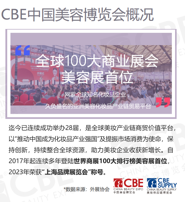 2026第30屆中國(guó)美容博覽會(huì)-上海浦東美博會(huì)第 30 屆 CBE 專業(yè)美容展美業(yè)全域新機(jī)遇,共啟未來新增長(zhǎng)!2026 年 5 月12-14日 . 上海新國(guó)際博覽中心(浦東)3500 + 展商 ×1000 + 品牌 ×23 萬㎡展區(qū),解鎖萬億市場(chǎng)新引擎!主辦方:上海百文會(huì)展有限公司 李經(jīng)理 183-O174-O328 同V【展會(huì)核心升級(jí)亮點(diǎn)】1. 全產(chǎn)業(yè)鏈超級(jí)樞紐,覆蓋全域渠道3500 + 全球優(yōu)質(zhì)展商:匯聚專業(yè)美容、功效護(hù)膚、儀器設(shè)備、美甲美睫、大健康等全品類品牌,其中60% 為guojipinpai,40% 為國(guó)內(nèi)新銳及l(fā)aozihao。10 萬 + 線下核心渠道:覆蓋全國(guó) 31 省 25 個(gè)分會(huì),鏈接專業(yè)美容院、皮膚管理中心、連鎖機(jī)構(gòu)等實(shí)體終端;300+MCN 機(jī)構(gòu)、5000+KOL、1000 + 私域精英同步打通線上流量入口。跨境貿(mào)易新通道:亞洲十國(guó)專業(yè)買家團(tuán)、101 個(gè)國(guó)家及地區(qū)海外買家直連,全年100 + 主題配對(duì)會(huì)精準(zhǔn)促成出海合作。2. 首發(fā)經(jīng)濟(jì) + quanwei背書,定義行業(yè)biaogan2026 百dapinpai榜單重磅揭曉:從 500 家企業(yè)中嚴(yán)選 100 個(gè)biaogan品牌,覆蓋八大類目,通過產(chǎn)品革新、技術(shù)突破、模式創(chuàng)新三大維度,樹立行業(yè)價(jià)值dianfan。政府指導(dǎo) + 趨勢(shì)發(fā)布:上海市商務(wù)委員會(huì)全程指導(dǎo),首發(fā)《2026 美業(yè)消費(fèi)趨勢(shì)報(bào)告》,現(xiàn)場(chǎng)發(fā)布超 7 萬件新品,搶占 “全球新品首發(fā)上海” 流量高地。quanwei獎(jiǎng)項(xiàng)矩陣:設(shè)立產(chǎn)品、品牌、科技三大年度獎(jiǎng)項(xiàng),聯(lián)合100 萬 + 官方傳播賬號(hào)(含行業(yè)媒體、KOL)全域曝光,助力品牌聲量躍升。3. 跨界融合新生態(tài),解鎖增長(zhǎng)密碼E5 館 “美業(yè) + 健康” 主題展:聚焦 “科技抗衰 × 草本養(yǎng)生 × 頭皮管理”,呈現(xiàn) AI 皮膚檢測(cè)、益生菌護(hù)膚、筋膜抗衰儀器等前沿跨界解決方案。彩妝 / 香氛 / 工具專區(qū)爆發(fā):Z 世代 “情緒美妝” 趨勢(shì)下,爾木萄等頭部品牌攜 “精致美學(xué)” 工具矩陣、沉浸式香氛體驗(yàn)場(chǎng)景亮相,引領(lǐng) “顏值經(jīng)濟(jì) + 情緒價(jià)值” 雙消費(fèi)引擎。【參展品牌價(jià)值解析】國(guó)貨突圍代表:爾木萄(展位號(hào):W2-J09)美妝工具賽道wangzhe:憑借 “棉花糖粉撲” 連續(xù)兩年登頂行業(yè) TOP1,“親膚柔巾” 年銷破 7500 萬元,雙 11 洗臉巾品類 TOP1,線下入駐4 萬家門店,2023 年?duì)I收增速超行業(yè)均值 3 倍。全域營(yíng)銷范本:線上聯(lián)合 500+KOL 打造 “工具即妝容生產(chǎn)力” 心智,線下以 “高顏值陳列 + 高性價(jià)比” 成、KKV 等渠道引流爆品,現(xiàn)場(chǎng)將首發(fā)Z 世代定制化彩妝工具套裝,揭秘 “高效化妝 × 視覺愉悅” 雙輪驅(qū)動(dòng)邏輯。laozihao煥新biaogan:孔鳳春(展位號(hào):E1-K09)163 年草本科技傳承:從慈禧御用 “鵝蛋粉” 到敏感肌修護(hù)專家,依托非遺工藝與現(xiàn)代皮膚學(xué),打造馬齒莧系列爆款,2023 年?duì)I收破億、增速 380%。國(guó)潮 2.0 創(chuàng)新實(shí)踐:現(xiàn)場(chǎng)首秀 “自然生命力” 修護(hù)系列,融合凍干技術(shù)與本草植萃,示范 “傳統(tǒng)成分 × 現(xiàn)代科技” 的跨界破圈路徑,解碼laozihao年輕化密碼。首次參展⑥ | 綻家:家清新品牌成交榜TOP,新西蘭家清標(biāo)桿品牌重磅亮相第29屆CBE綻家“自然之力,綻現(xiàn)生活之美” 展位號(hào)E1-W15綻家(LYCOCELLE)是源自新西蘭的高端自然植萃品牌,是新一代家居清潔與個(gè)護(hù)領(lǐng)域的革新者,以“科學(xué)清潔美學(xué)”為核心,致力于為現(xiàn)代家庭提供健康、環(huán)保的家居清潔與衣物護(hù)理解決方案。自2017年創(chuàng)立以來,品牌秉承“天然、安全、高效”的理念,致力于為現(xiàn)代家庭打造健康、愉悅的清潔體驗(yàn)。在全球家居清潔市場(chǎng)向 “天然、高效、細(xì)分” 加速升級(jí)的浪潮中,源自新西蘭的高端家居護(hù)理品牌「綻家」,即將于2025年5月12-14日攜“植萃清潔美學(xué)”矩陣產(chǎn)品登陸第29屆CBE中國(guó)美容博覽會(huì)。作為新西蘭天然清潔領(lǐng)域的標(biāo)桿品牌,綻家以“天然成分×科學(xué)配方”為核心,用“分區(qū)護(hù)理+場(chǎng)景化解決方案”重新定義家居清潔的 “安全” 與 “精致”。此次首秀,品牌將在上海新國(guó)際博覽中心E1館W15展位,與全球 3200+美妝企業(yè)同頻共振,在“全球新品 首發(fā)上海”的美妝盛宴上,詮釋“科學(xué)清潔美學(xué)”的品牌哲學(xué)。【展會(huì)同期活動(dòng)搶先知】板塊 核心內(nèi)容 價(jià)值亮點(diǎn)趨勢(shì)論壇 全球美妝趨勢(shì)峰會(huì):解讀成分黨、可持續(xù)美妝、男性護(hù)膚等熱點(diǎn),發(fā)布《2026 功效護(hù)膚白皮書》 quanwei數(shù)據(jù)驅(qū)動(dòng)產(chǎn)品研發(fā)與營(yíng)銷策略技術(shù)大賽 美甲美睫 / 紋繡 / 皮膚管理實(shí)操賽,dingjian技師現(xiàn)場(chǎng)競(jìng)技 挖掘行業(yè)人才,樹立技藝標(biāo)準(zhǔn)商貿(mào)配對(duì) 一對(duì)一渠道對(duì)接會(huì),跨境貿(mào)易專場(chǎng),私域流量運(yùn)營(yíng)閉門會(huì) 精準(zhǔn)匹配資源,促成千萬級(jí)合作C 端種草日 KOL 現(xiàn)場(chǎng)直