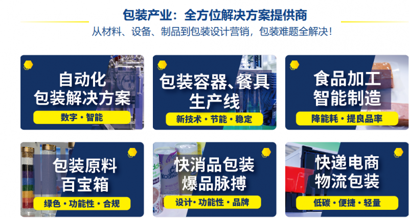 展品范圍: 食品飲料加工及包裝機械、醫(yī)藥化妝品加工及包裝機械、非食品消費品及工業(yè)品加工及包裝機械、糕點糖果及烘焙食品加工及包裝機械、塑料及紙包裝容器生產(chǎn)設備(瓶、杯、袋、盒等)、包裝材料生產(chǎn)及加工機械、包裝材料、包裝容器及包裝制成品、包裝原材料、包裝印刷、加工與包裝配件、智能/自動化包裝、物流包裝、包裝設計、服務