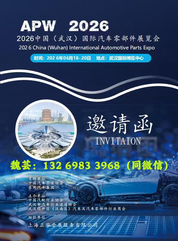 2026中國(武漢)國際汽車零部件博覽會時(shí)間:2026年6月18-20日地點(diǎn):武漢國際博覽中心邀請函支持單位:中國汽車工業(yè)協(xié)會、東風(fēng)汽車集團(tuán)主辦單位中國汽配行業(yè)協(xié)會、武漢市汽車行業(yè)流通協(xié)會、武漢經(jīng)開區(qū)(漢南區(qū))汽車及汽車零部件行業(yè)商會組織單位上海正泓會展服務(wù)有限公司展會背景