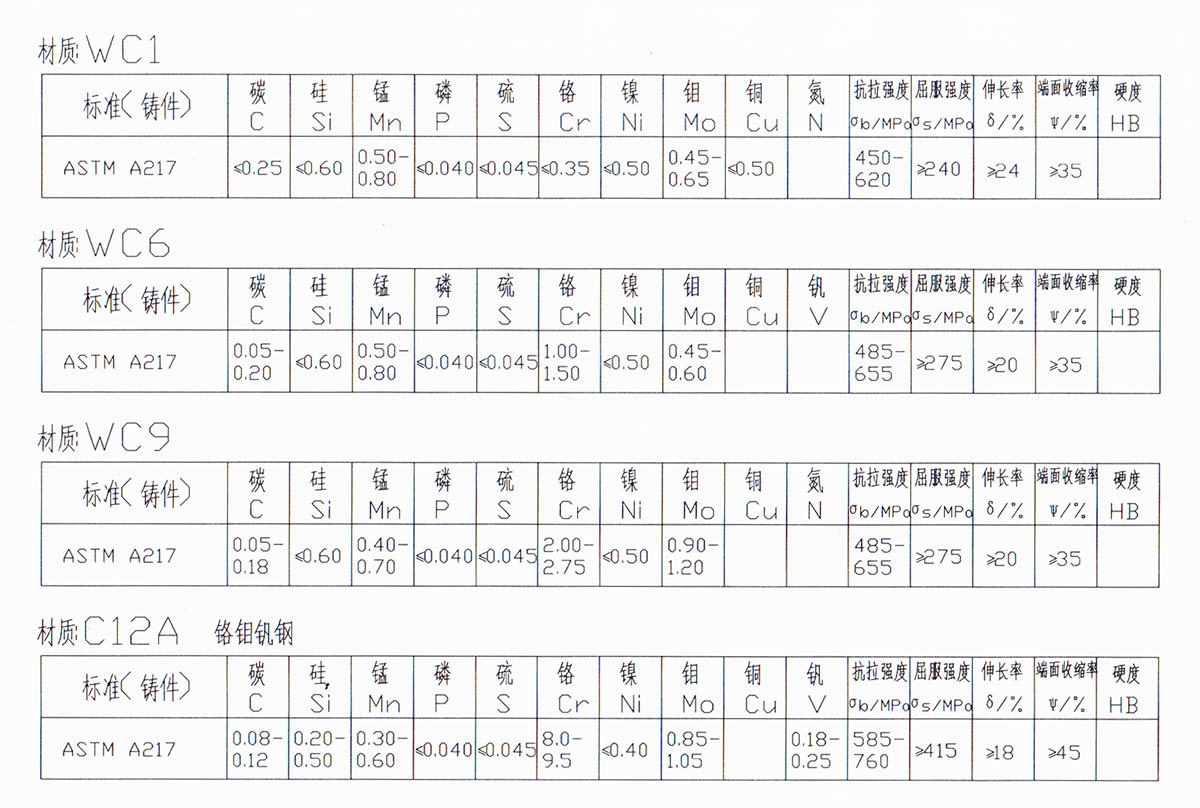 閥門WCB/WCA/WCC/A105材質(zhì)元素表